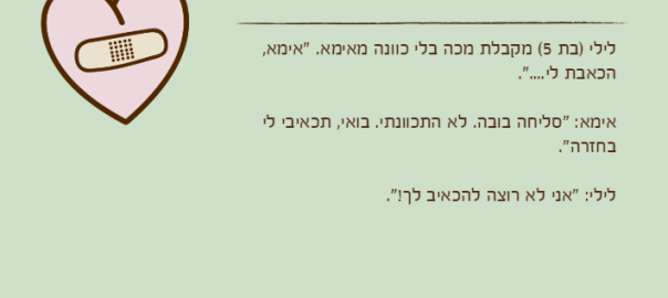 לילי )בת 5( מקבלת מכה בלי כוונה מאימא. "אימא, הכאבת לי….".