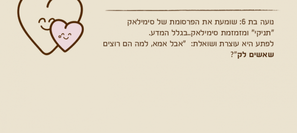 נועה בת 6: שומעת את הפרסומת של סימילאק "תניקי" ומזמזמת סימילאק..בגלל המדע.