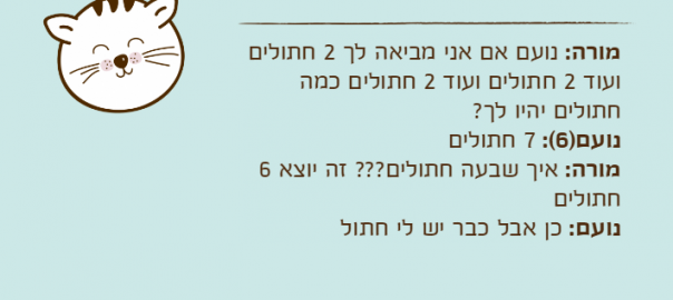 מורה: נועם אם אני מביאה לך 2 חתולים ועוד 2 חתולים ועוד 2 חתולים כמה חתולים יהיו לך?