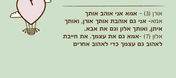 אלון )7( –אמא גם את עצמך. את חייבת לאהוב גם עצמך כדי לאהוב אחרים
