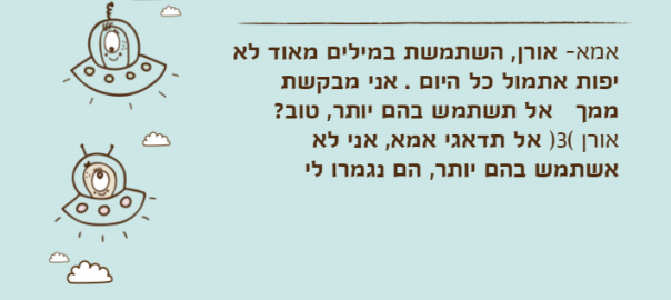 אמא- אורן, השתמשת במילים מאוד לא יפות אתמול כל היום . אני מבקשת ממך אל תשתמש בהם יותר, טוב?