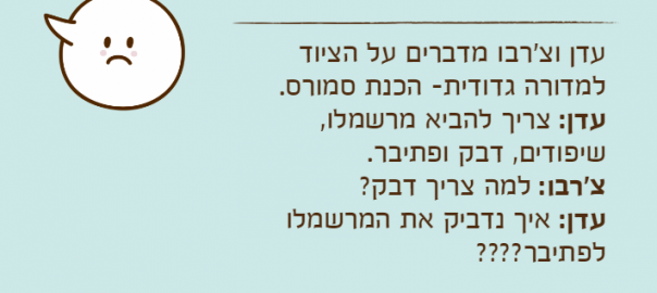 עדן: צריך להביא מרשמלו, שיפודים, דבק ופתיבר.