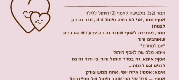 אסף: תמר, אני לא רוצה חיתול ורוד, ורוד זה רק לבנות!