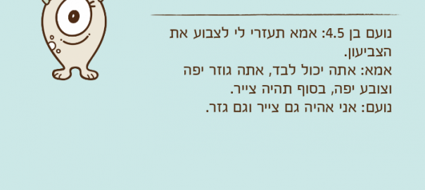 נועם בן 4.5: אמא תעזרי לי לצבוע את הצביעון.