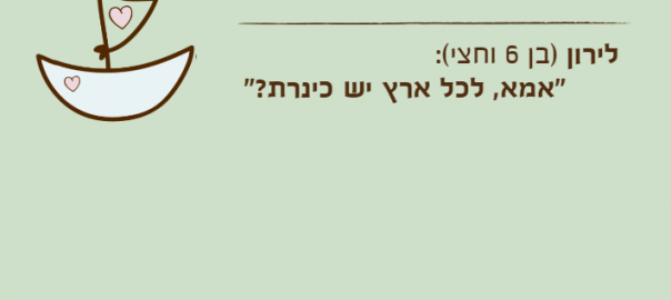 לירון )בן 6 וחצי(: "אמא את יודעת שיובל המבולבל גנב תינוק? אמרו בחדשות שגילו את זה לפני שבועיים, בזכות זה שמצאו שערה של התינוק."