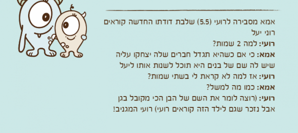 אמא מסבירה לרועי )5.5( שלבת דודתו החדשה קוראים