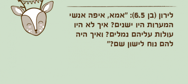 לירון )בן 6.5(: "אמא, איפה אנשי המערות היו ישנים? איך לא היו עולות עליהם נמלים? ואיך היה להם נוח לישון שם?"