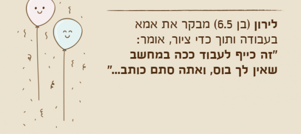 לירון )בן 6.5( מבקר את אמא בעבודה ותוך כדי ציור, אומר: