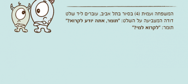 דודה המצביעה על השלט: "תומר, אתה יודע לקרוא?"