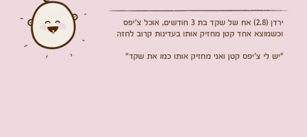 ירדן )2.8( אח של שקד בת 3 חודשים, אוכל צ'יפס וכשמוצא אחד קטן מחזיק אותו בעדינות קרוב לחזה