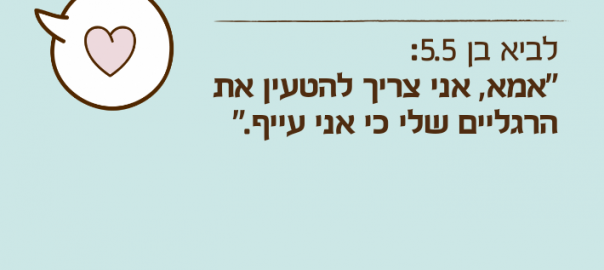 "אמא, אני צריך להטעין את הרגליים שלי כי אני עייף."