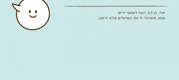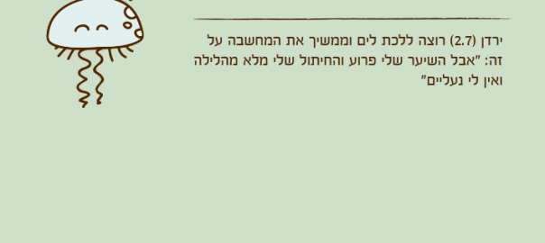 ירדן )2.7( רוצה ללכת לים וממשיך את המחשבה על זה: "אבל השיער שלי פרוע והחיתול שלי מלא מהלילה ואין לי נעליים"
