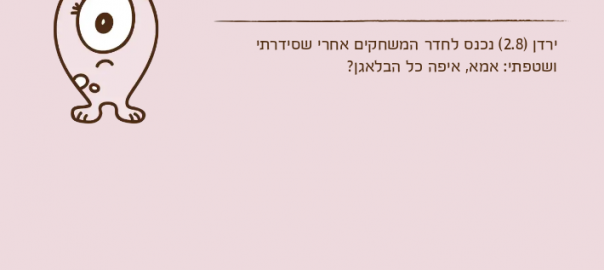 ירדן )2.8( נכנס לחדר המשחקים אחרי שסידרתי ושטפתי: אמא, איפה כל הבלאגן?