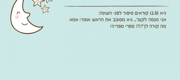 אני מנסה לקצר.. גיא מסובב את הראש אומר: אמא מה קורה לך?!?! ספרי ספרי!!!
