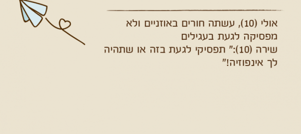 שירה )10(:" תפסיקי לגעת בזה או שתהיה לך אינפוזיה!"