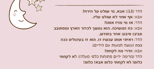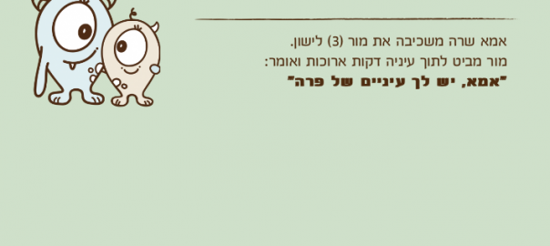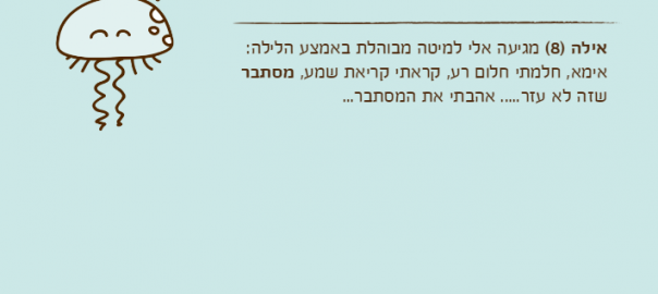 אילה )8( מגיעה אלי למיטה מבוהלת באמצע הלילה: אימא, חלמתי חלום רע, קראתי קריאת שמע, מסתבר שזה לא עזר….. אהבתי את המסתבר…