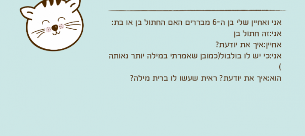 אני ואחיין שלי בן ה-6 מבררים האם החתול בן או בת: