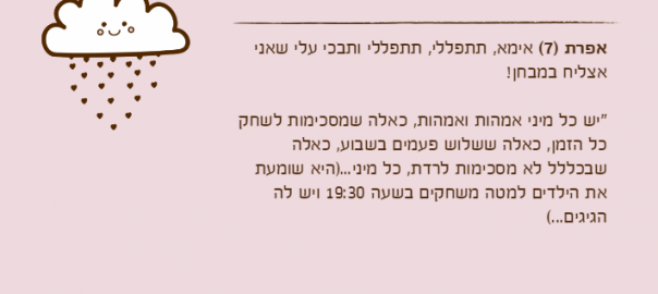 אפרת )7( אימא, תתפללי, תתפללי ותבכי עלי שאני אצליח במבחן!