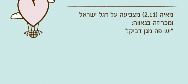 מאיה )2.11( מצביעה על דגל ישראל ומכריזה בגאווה: