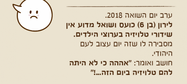 לירון )בן 6( כועס ושואל מדוע אין שידורי טלויזיה בערוצי הילדים.