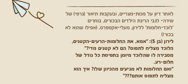 לירון )בן 5(: "אמא, את החלומות-הרעים-הקטנים, הלוכד מצליח לתפוס? הם לא קטנים מדי?"