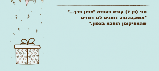 "אמא,בהגדה נותנים לנו רמזים שהאפיקומן הוחבא בצפון."