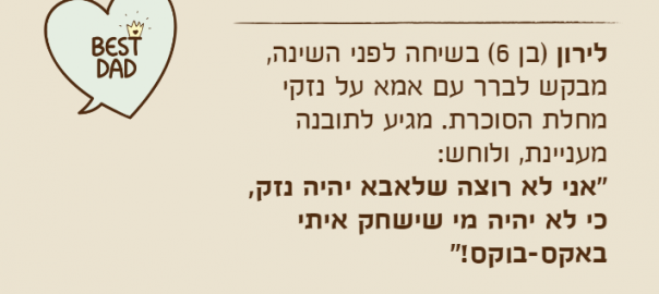 "אני לא רוצה שלאבא יהיה נזק, כי לא יהיה מי שישחק איתי באקס-בוקס!"