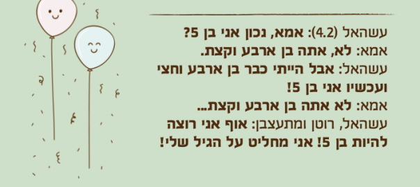 עשהאל, רוטן ומתעצבן: אוף אני רוצה להיות בן 5! אני מחליט על הגיל שלי!