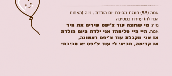 אמה )5.5( חוגגת מסיבת יום הולדת , מיה )האחות הגדולה( עוזרת במסיבה