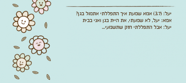 יעל: )3.7( אמא שמעת איך התפללתי אתמול בגן?