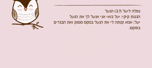 הגננת קיקי: יעל בואי אני אנעל לך את הנעל