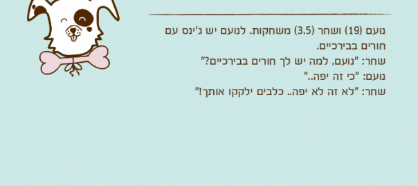שחר: "נועם, למה יש לך חורים בבירכיים?"