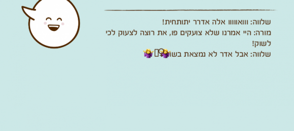 מורה: היי אמרנו שלא צועקים פו, את רוצה לצעוק לכי לשוק!