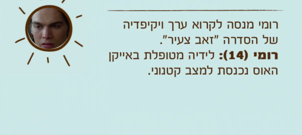 רומי מנסה לקרוא ערך ויקיפדיה של הסדרה "זאב צעיר".
