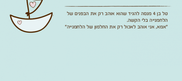 טל בן 4 מנסה להגיד שהוא אוהב רק את הבפנים של הלחמנייה בלי הקשה.