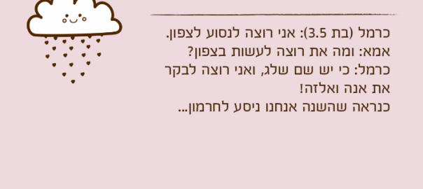 כרמל )בת 3.5(: אני רוצה לנסוע לצפון.
