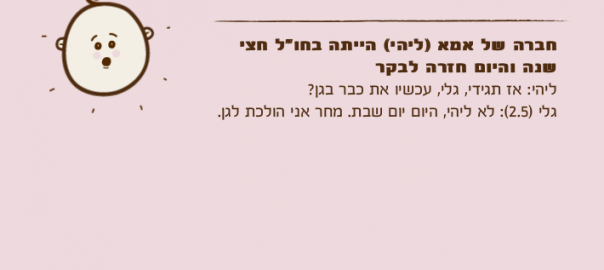 גלי )2.5(: לא ליהי, היום יום שבת. מחר אני הולכת לגן.