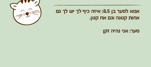 אמא לסער בן 8.5: איזה כיף לך יש לך גם אחות קטנה וגם אח קטן.