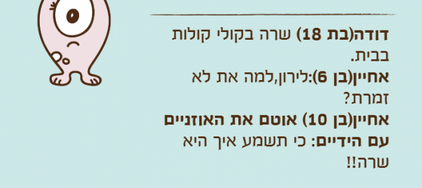 אחיין)בן 10( אוטם את האוזניים עם הידיים: כי תשמע איך היא שרה!!