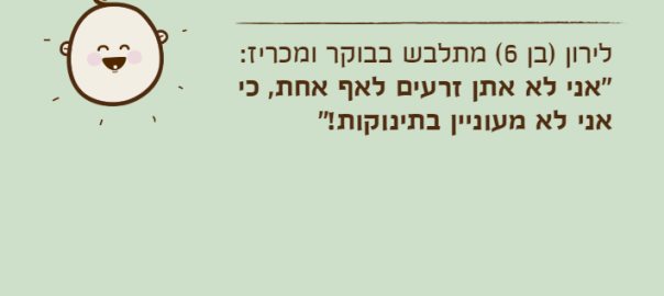 לירון )בן 6( מתלבש בבוקר ומכריז: "אני לא אתן זרעים לאף אחת, כי אני לא מעוניין בתינוקות!"