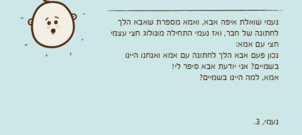 נכון פעם אבא הלך לחתונה עם אמא ואנחנו היינו בשמיים? אני יודעת אבא סיפר לי!