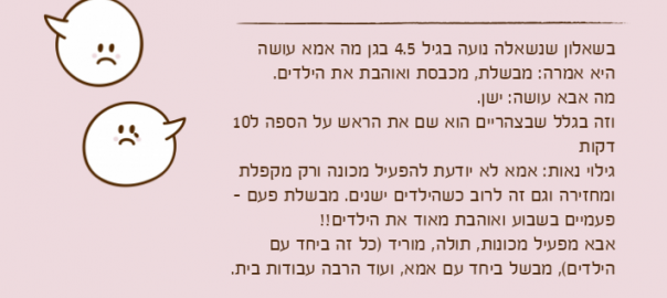 גילוי נאות: אמא לא יודעת להפעיל מכונה ורק מקפלת ומחזירה וגם זה לרוב כשהילדים ישנים. מבשלת פעם – פעמיים בשבוע ואוהבת מאוד את הילדים!!