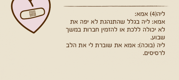 אמא: ליה בגלל שהתנהגת לא יפה את לא יכולה ללכת או להזמין חברות במשך שבוע.