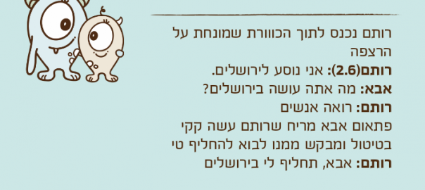 פתאום אבא מריח שרותם עשה קקי בטיטול ומבקש ממנו לבוא להחליף טי
