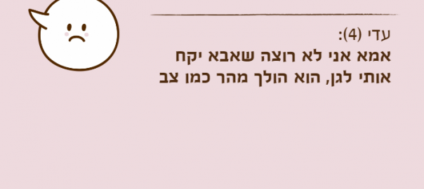 אמא אני לא רוצה שאבא יקח אותי לגן, הוא הולך מהר כמו צב