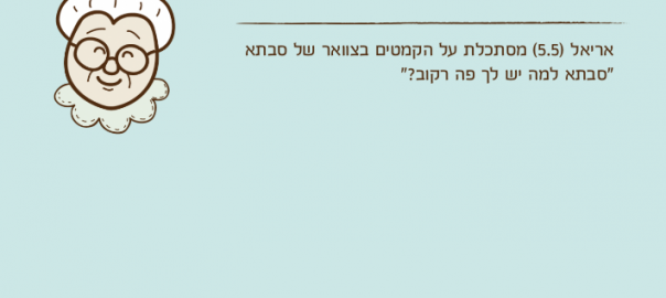 אריאל )5.5( מסתכלת על הקמטים בצוואר של סבתא