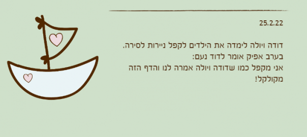 דודה ויולה לימדה את הילדים לקפל ניירות לסירה.