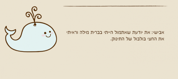 אבישי: את יודעת שאתמול הייתי בברית מילה וראיתי את החצי בולבול של התינוק.
