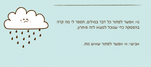 נוי: אפשר לפתור כל דבר במילים, תספר לי מה קרה בהפסקה כדי שנוכל למצוא לזה פיתרון.