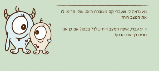 יו יו: עברי, איפה המצב רוח שלך? בבטן? אם כן אני מרים לך את הבטן!